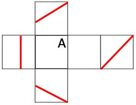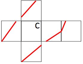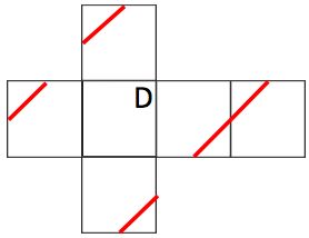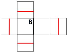 Which of the nets can be folded into a box with a red ribbon printed continuously all the way around it?